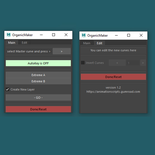 ORGANICMAKER makes the tedious job of copying curves between controls easy. Just choose you master curve ( your Jaw rot X for example) , set you 2 EXTREMES poses for the desire controls and hit GO!